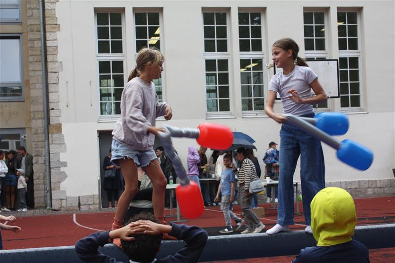 Viele Familien mit Geschwistern und Freunden kamen auf den Schulhof, um gemeinsam einen abwechslungsreichen Nachmittag zu verbringen. Für das leibliche Wohl war bestens gesorgt: Bratwürste vom Grill, Zuckerwatte und Popcorn fanden großen Anklang bei Groß und Klein.
