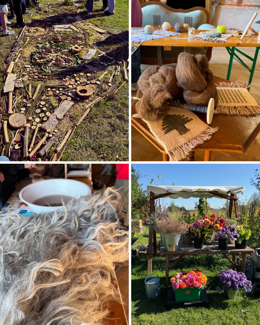 - Von der Wolle zum Faden: Geduldig wurde gewaschen, gekämmt und gesponnen – bis aus Rohwolle ein weicher Faden entstand.