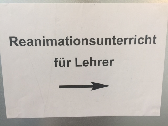 Mehrere Lehrerinnen und Lehrer des Ratsgymnasiums nahmen am Donnerstag, 24. September 2015, in der Bielefelder Stadthalle an der Fortbildung „Teach the teacher – Reanimationsunterricht für Lehrer“ teil, die im Rahmen der „Woche der Wiederbelebung“ unter der Leitung von Prof. Dr. Niels Rahe-Meyer vom Franziskus-Krankenhaus stattfand. Bei einem Herzstillstand kommt es auf die Zeit an, bevor der Notarzt kommt. Aber nur 15% der Deutschen starten einen Wiederbelebungsversuch – im Gegensatz zu 70 % in Norwegen, wo Wiederbelebung in der Schule unterrichtet wird. 10 000 Leben könnten im Jahr in Deutschland gerettet werden, wenn die Bevölkerung besser auf den Notfall vorbereitet wäre. Ziel der Fortbildung ist es, dass die ausgebildeten Lehrerinnen und Lehrer ihr Wissen an Schülergruppen weitergeben.